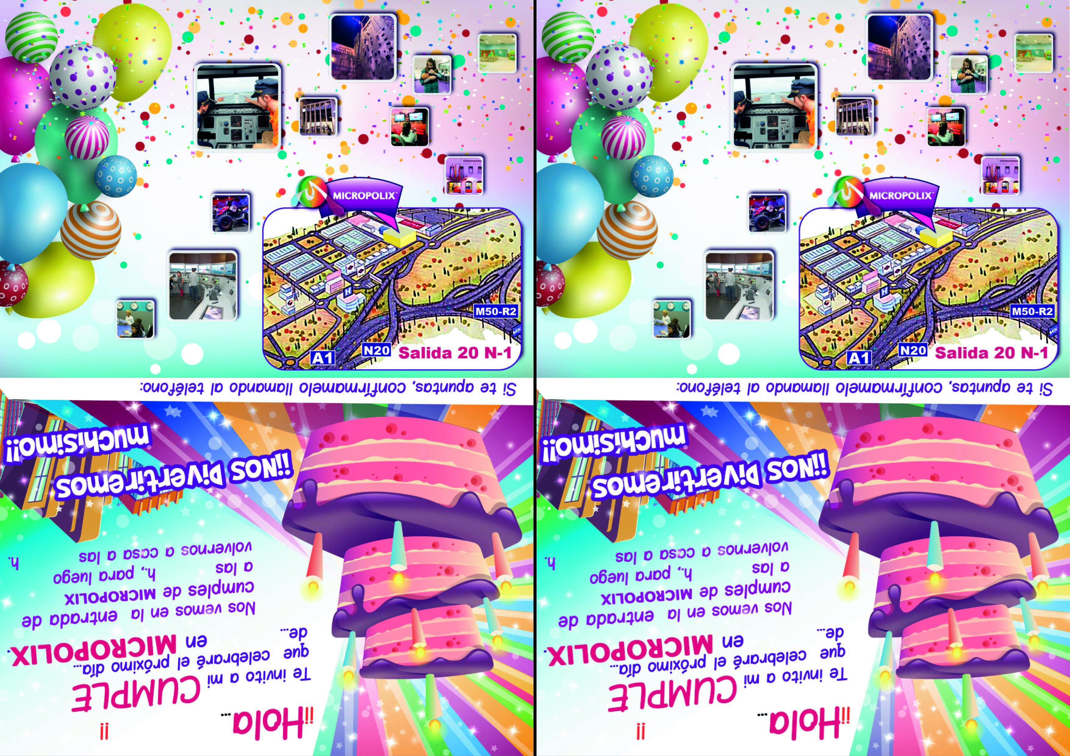 4.3) La posibilidad de descargar las invitaciones, desde micropolix.com al realizar la reserva https://micropolix.s3.amazonaws.com/INVITACION-CUMPLE.jpg también se pueden solicitar a info@micropolix.com.